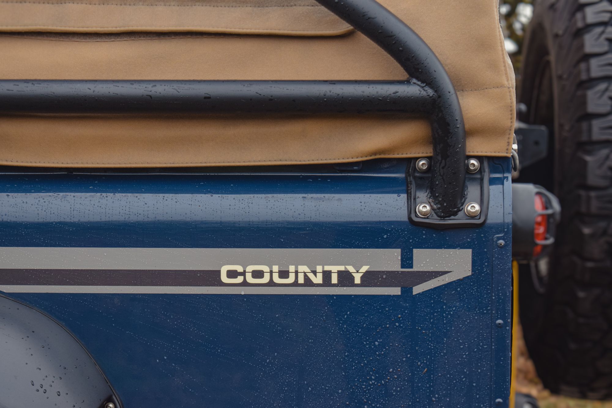 The bespoke steel wheels retain the honest charm of the original Land Rover hub design while allowing for a broader footprint. The result is a more planted, muscular presence without compromising its heritage aesthetic. It remains unmistakably County in spirit, just more purposeful in execution.