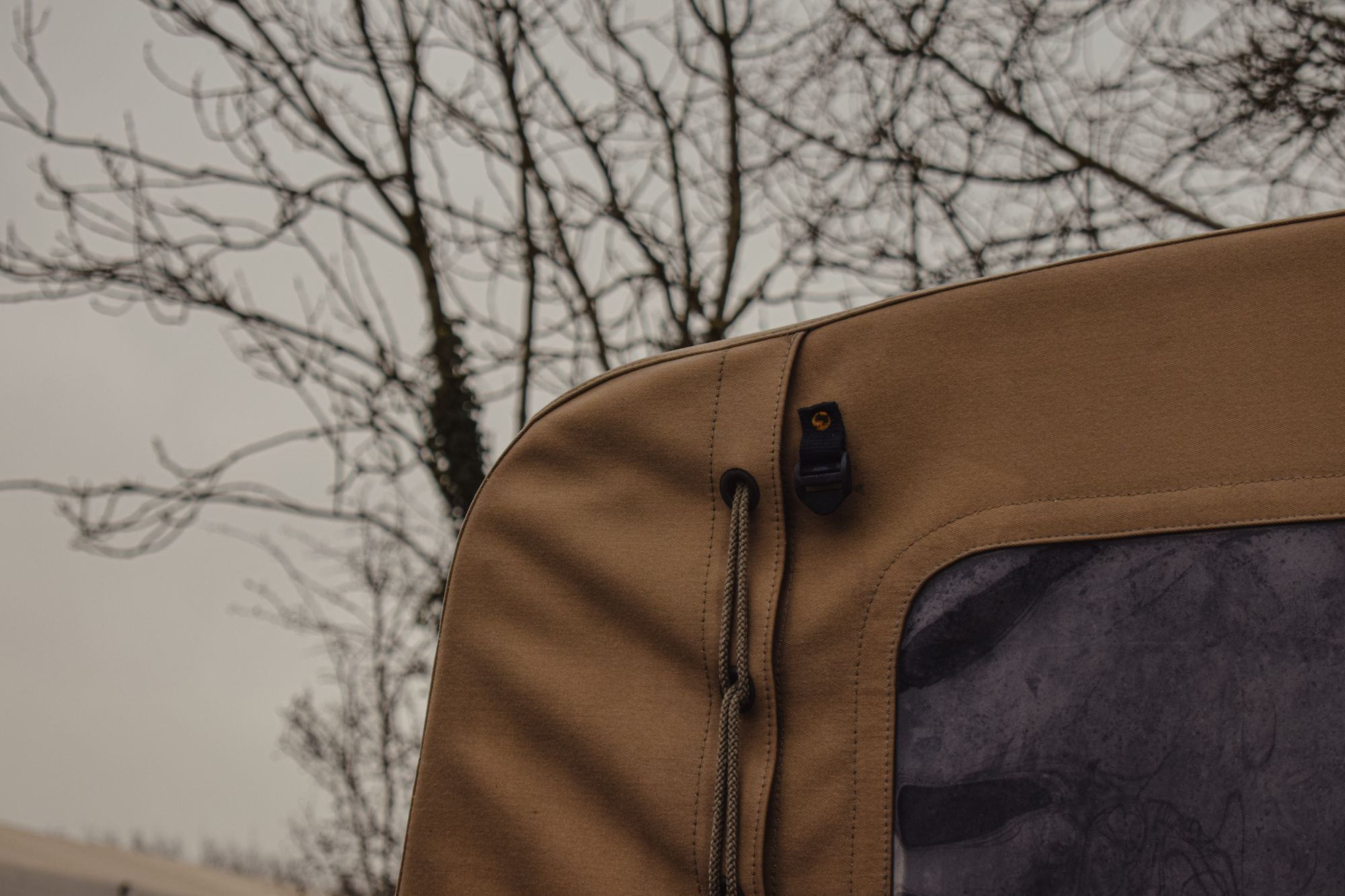 Khaki canvas rear canopy