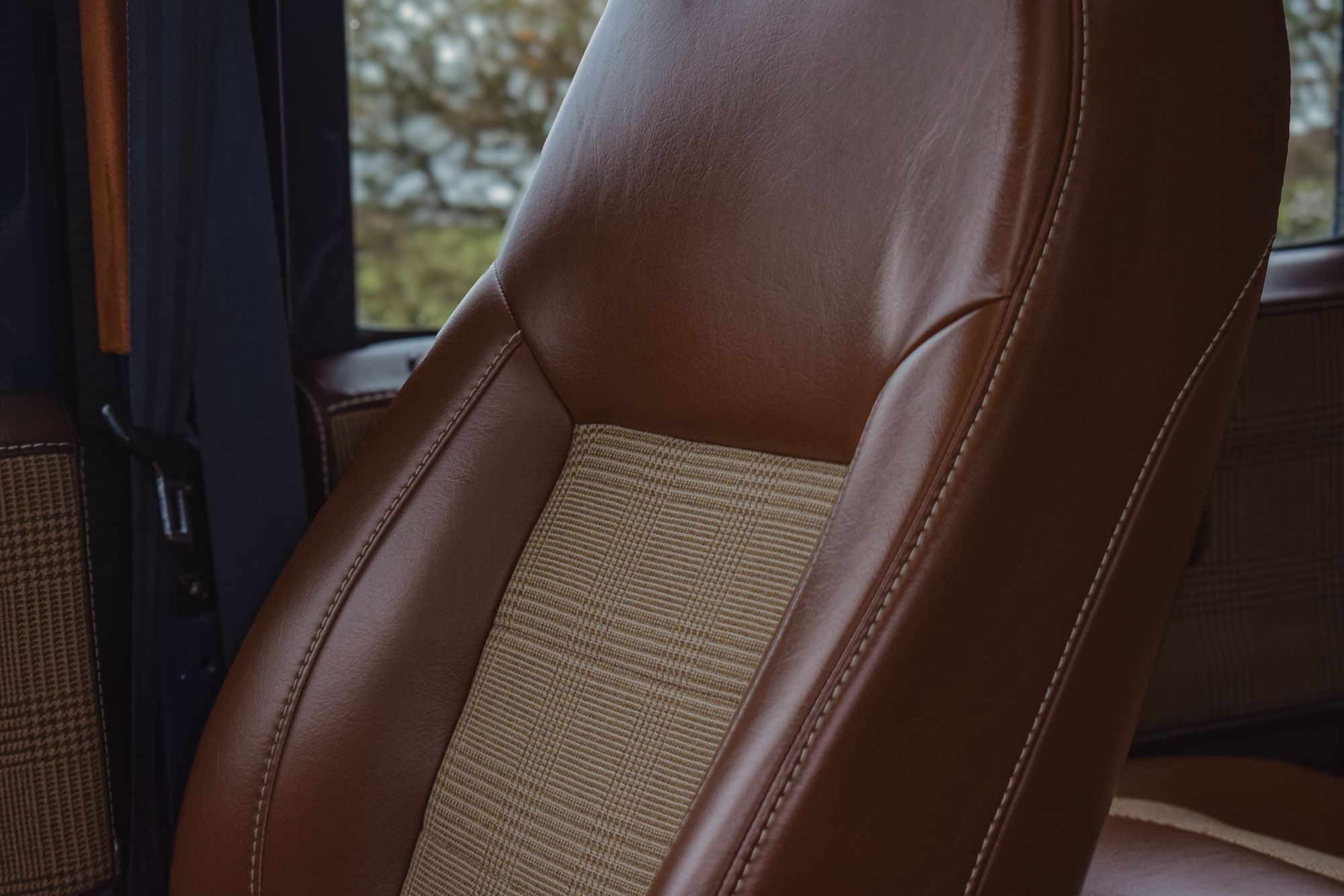 The use of burr walnut and tweed introduces a layer of understated sophistication, softening the Defender’s utilitarian roots without losing its character. The reworked instrumentation pays tribute to early Land Rover typography, while the colour-matched seatbelts demonstrate the depth of thought behind the build.