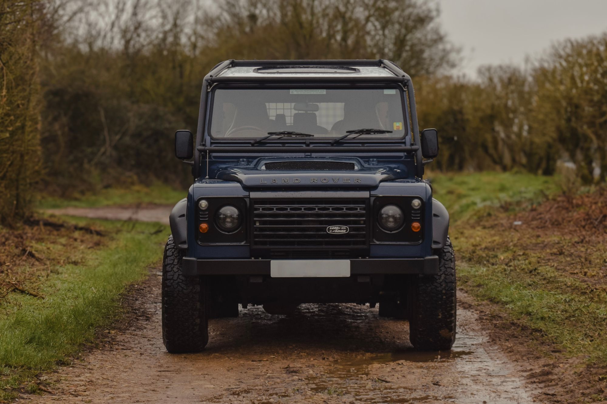 Finished in Tamar “Farmer” Blue with a contrasting white roof and white steel wheels, this build pays homage to the classic County-era Defenders of the 1990s. The addition of the iconic County side stripe further reinforces its period-correct identity, while a khaki canvas rear canopy adds a utilitarian edge perfectly suited to the double cab silhouette.